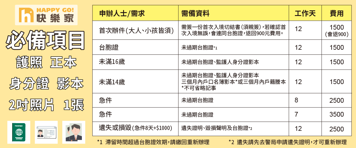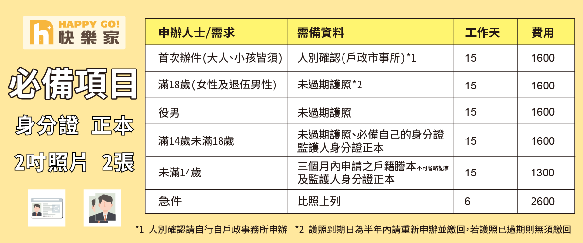 4.辦理費用:新台幣$1,300元(14歲以上)或 新台幣$900元(未滿14歲),