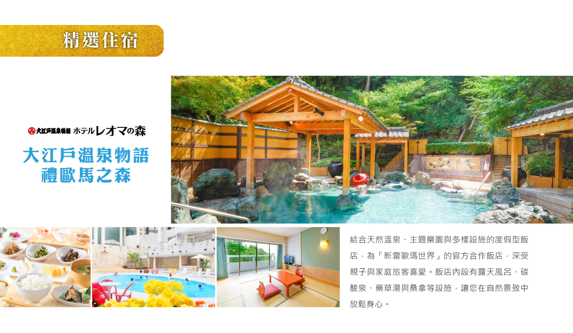 住宿:大江戶溫泉禮歐馬之森 或同等級