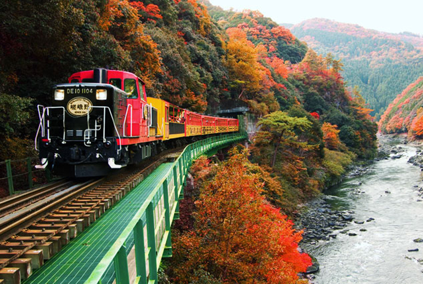 【嵐山小火車】是京都的一條風景鐵道,提供遊客從嵐山到龜岡的沿河景觀旅程,這條小火車路線穿越美麗的山間景色,沿途可以欣賞到豐富的自然美景,是京都旅遊的熱門景點之一。嵐山小火車不僅是一種交通工具,更是一種休閒的體驗,讓遊客在舒適的車廂內放鬆,欣賞沿途的絕美風光。