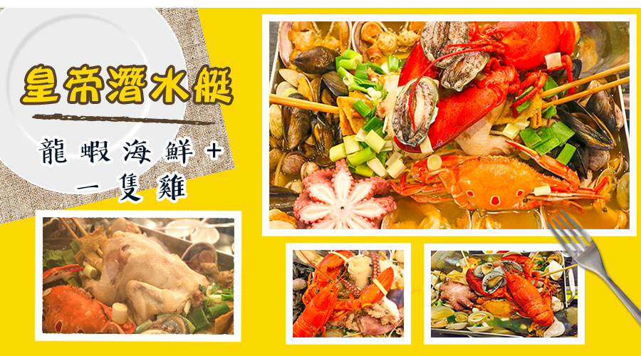 晚餐:★特別推薦豪華海鮮餐★【兄弟潛水艇】皇帝蒸海鮮龍蝦一隻雞(四人一桌共鍋 & 龍蝦2人一隻)(餐標 40000韓元)