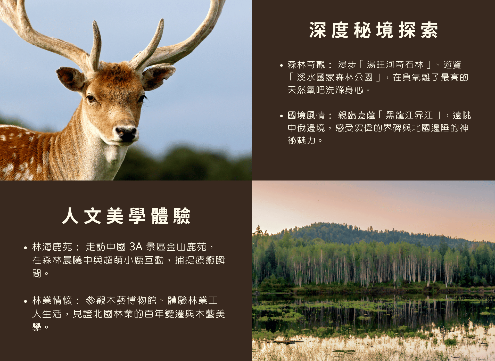 早餐:飯店早餐 午餐:伊春號「美食盲盒」 晚餐:九鑫度假村迎接晚宴