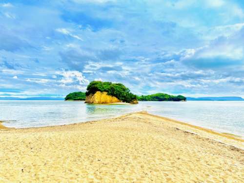 會隨著漲退潮而出現或消失的砂道。從相鄰小豆島的「弁天島」開始,一共連結4個島嶼。 能通過天使的散步道的時刻為上午及下午的時間,一天兩次於退潮時露出地面砂道。據說與心愛的人手牽手一起走過此散步道的話,就會有天使降落在兩人之間,並實現您的願望。是全國票選出來最適合求婚的浪漫場所之一,被認定為戀人的聖地。