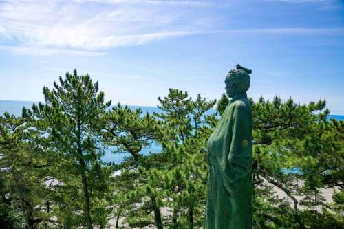 桂濱是高知縣具代表性的風景名勝之一,這裡的海灘呈現出美麗的月牙形狀,能俯瞰壯麗的太平洋景色,自古以來即是著名的賞月聖地,正如當地民謠「夜來節」所唱,「賞月名所,當數桂濱」。這裡的沙灘呈現緩緩的弧形,延伸至深藍色的太平洋,海岸邊種植著茂密的松林,景色如詩如畫,據說還是幕末志士「坂本龍馬」鍾愛之地。