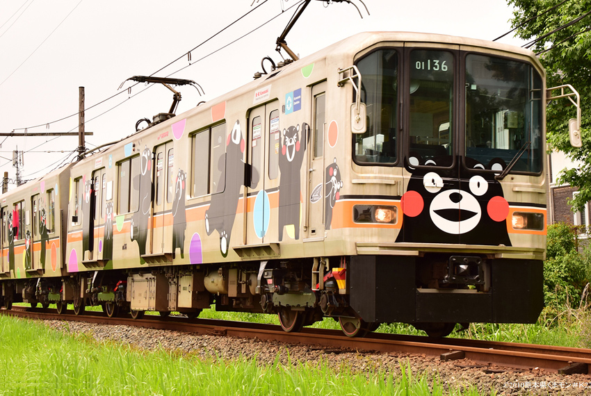 【萌熊電車】以「萌熊」為主題的彩繪列車,2014年3月開始運行,行程特別安排搭乘可愛的「萌熊彩繪電車」,親身感受熊本的超人氣卡哇伊明星「萌熊」的超迷人魅力。在北熊本車站內備有熊本電鐵限定商品及萌熊商品,可以在此歡樂選購。
