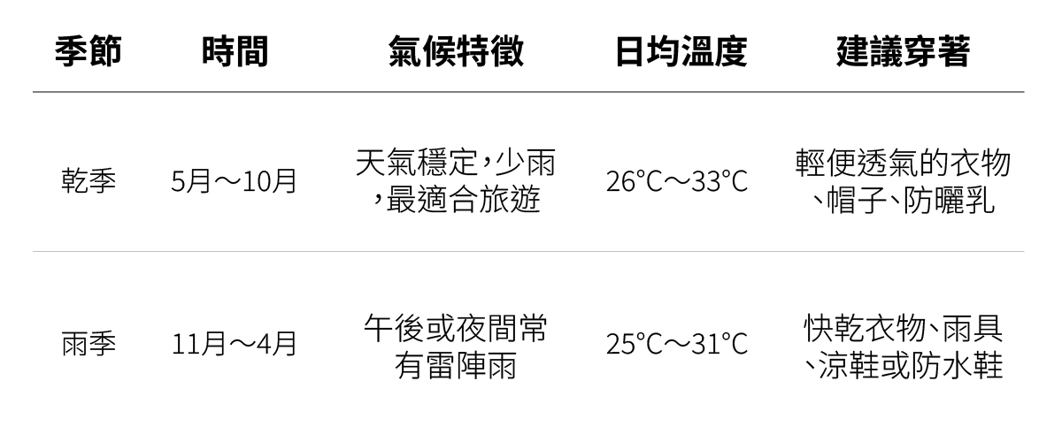 簽證:持台灣護照可申辦「落地簽」或「電子簽證(e-visa)」,建議事先完成申請避免排隊。此簽證適用於觀光、商務會談、採購、會議、政府公務及轉機等活動,費用為$500,000$印尼盾,可停留30天並延長一次。